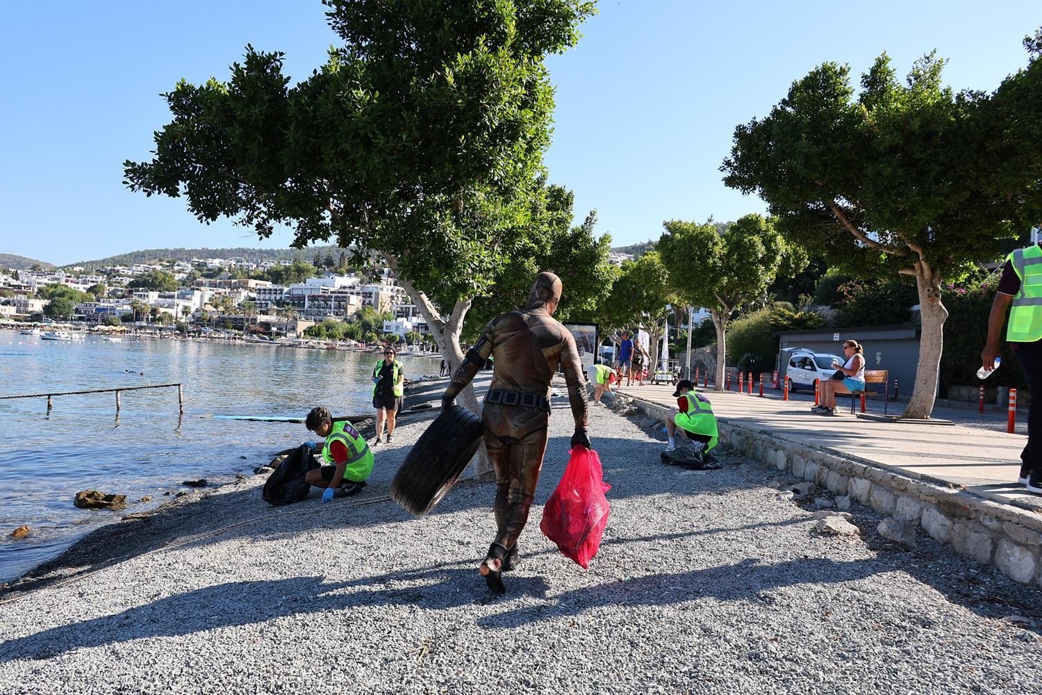 Bodrum Cruise Port plaj ve deniz temizleme çalışmalarına devam ediyor