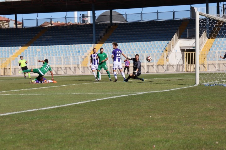 Dakika 49 da gelişen Bodrumspor atağında Cem Ekinci’nin ceza sahasına girerek yaptığı vuruş direkten oyun alanına geri döndü.