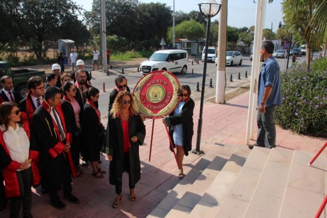 Saygı duruşunda bulunulup İstiklal Marşı okunmasının ardından Atatürk büstüne çelenk bırakılmasıyla devam eden törende konuşan Bodrum Kaymakamı Bekir Yılmaz, “Tüm yargı camiamıza bu yeni yılda kolaylıklar diliyoruz. Biliyorsunuz adalet evrensel bir kavram, hepimize lazım olan bir kavram. Adaletin önemini en iyi anlatan söz; ‘Adalet Mülkün Temelidir.’ Adalet, devletin, toplumsal düzenin şüphesiz teminatıdır. Yargı camiamız da gerçekten böyle zor, sorumluluğu olan çok önemli bir görevi ifa ediyor. Bodrum’da da iş yükünüzün ne kadar ağır olduğunu biliyoruz. Biz her zaman yargı camiamızın yanında ve emrindeyiz. Size bu yeni yılda çalışmalarınızda başarılar ve kolaylıklar diliyorum.” dedi.