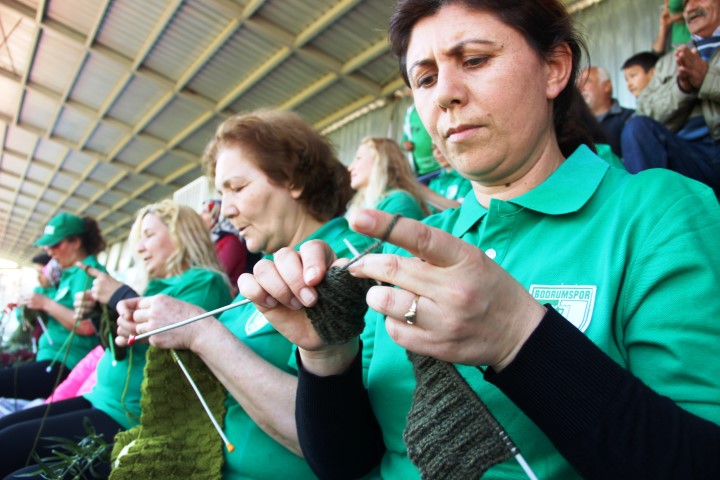 Bodrum stadına gelen kadınlar bir yandan “Zeytin Dalı Operasyonu” kapsamında Afrin’de bulunan Türk askerlerine atkı, bere ve eldiven örerken diğer yandan da futbol oynayan çocuklarına destek verdi. Tribünde örgü ören kadınları gören taraftarlar ise şaşkınlıklarını gizleyemedi.