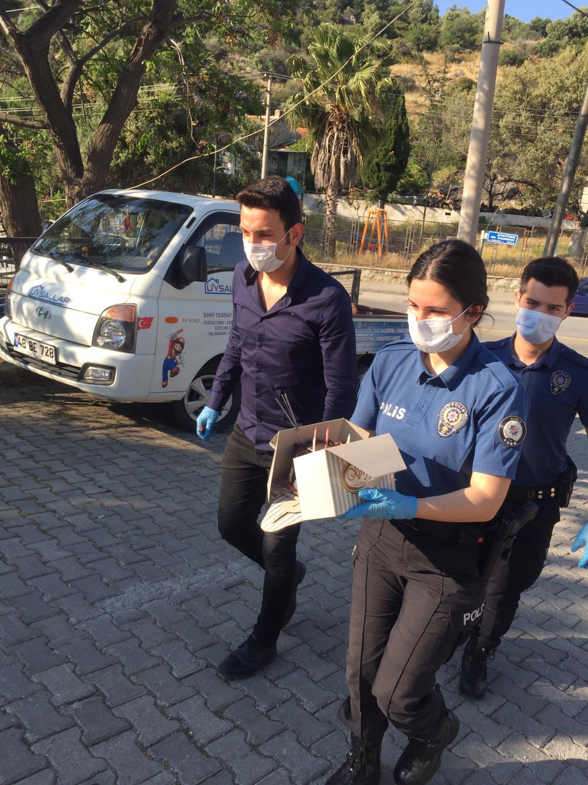 Bodrum Emniyet Müdürlüğü ekipleri, Yalıkavak Mahallesi’nde oturan Uysal ailesinin talebi üzerine, 5 yaşındaki Aysima için doğum günü pastası aldı. Eve gelen polisleri ellerinde pastayla karşısında gören Aysima sevinç yaşadı.