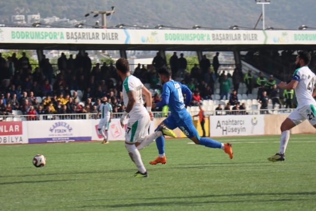 Dakika 86’da gelişen Bodrumspor atağında Orhan Aktaş’ın şutu az farkla auta çıktı.