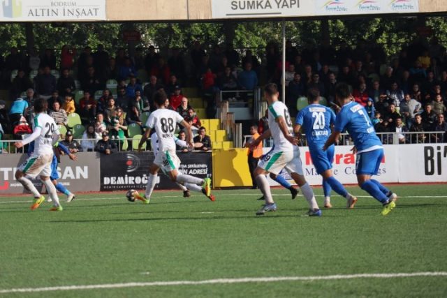 Dakika 82’de gelişen Bodrumspor atağında Samet Katanalp’İn vuruşu kaleci Oğuz’u geçerken Zahit Fındık topu çizgiden uzaklaştırdı.