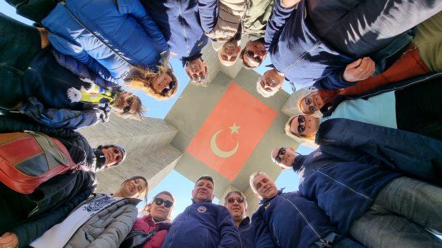 Çanakkale destanının yazıldığı toprakları ve şehitlerimizi ziyaret etmek için düzenlenen geziye Bodrum Fenerbahçeliler Derneği Başkanı Mert Sayın, dernek yönetim kurulu üyeleri, dernek üyeleri ve aileleri ile çocukları katıldı. Türkiye Cumhuriyet’inin kuruluşunun ilk adımlarının atıldığı toprakları dernek üyeleri ve çocuklar ile ziyaret ettiklerini belirten Başkan Mert Sayın; “Gazi Mustafa Kemal Atatürk önderliğinde hem karada hem denizde zorlu mevsim ve coğrafi şartlarda aylarca süren savaş sonunda destan yazan şehitlerimizi anma ziyareti için Gelibolu yarımadasına geldik. Bodrum Fenerbahçeliler Derneği yönetim kurulu olarak düzenlediğimiz bu ziyaret gezimize çocuklarımız da katıldı. Bu vatan topraklarının ve bayrağımızın ne şartlar altında savunulduğunu, vatanımız ile bayrağımızın ne kadar değerli olduğunu gelecek nesillerimize yerinde anlatmak istedik. Bu anlamlı ziyareti organize eden yönetim kurulu üyelerime ve etkinliğe çocukları ile katılan sarı lacivert gönüllüsü Fenerbahçeli üyelerimize teşekkür ederim. Vatanımızı, milletimiz, milli ve manevi değerlerimizi korumak için ölümü düşünmeden göğüs göğüse çarpışan başta Gazi Mustafa Kemal Atatürk olmak üzere tüm şehitlerimize, gazilerimize ve şanlı Türk Ordusu’na minnettarız.”