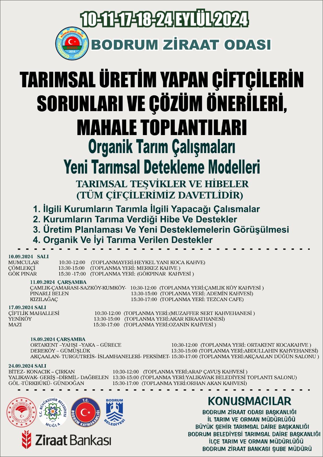 Bodrum Ziraat Odası Başkanı Mehmet Melengeç çiftçilerimizi desteklemek amacıyla organize edilen bu eğitim ve bilgilendirme toplantısına ilgili vatandaşların, üreticilerimizin katılımlarının önemli olduğunu belirterek davette bulundu.