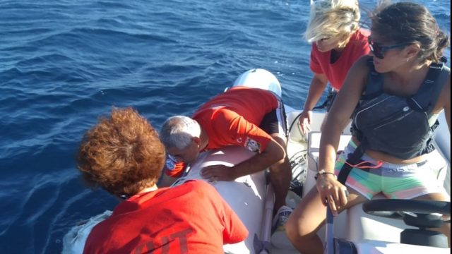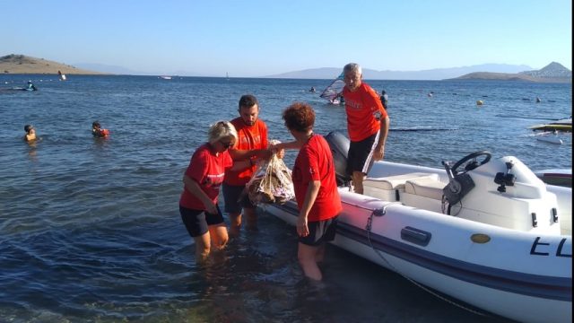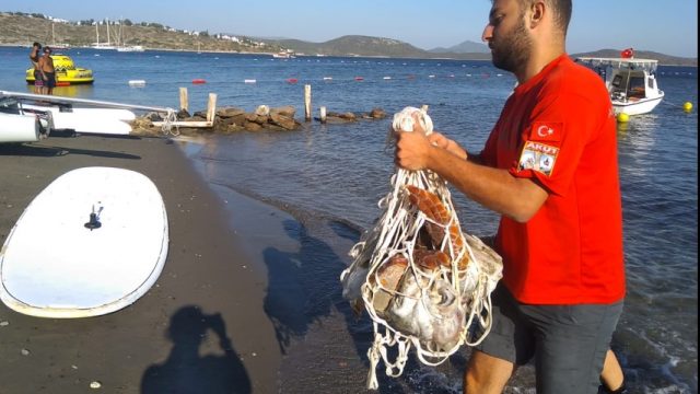 Gelen ihbarı değerlendiren DEKAMER yetkilileri konuyu Bodrum Akut ekibine yönlendirdi. Botla denize açılarak Caretta caretta’yı kurtarmaya giden 4 kişilik AKUT ekibi gördükleri manzara karşısında şok oldu.