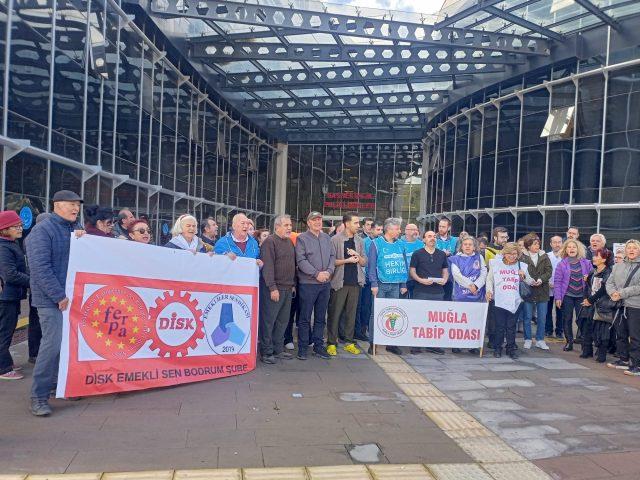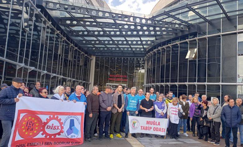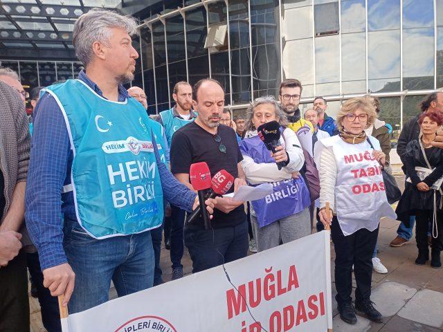 Aile hekimlerinin pazartesi günü başlayan iş bırakma eylemleri, Cuma günü mesai bitiminde sonlanacak. Eylemin 3. Günü olan bugün aile hekimlerine, devlet hastanesi hekimleri ve sağlık emekçileri de destek verdi. Bu nedenle Bodrum Devlet Hastanesi önünde basın açıklaması gerçekleştirildi. 14 sağlık örgütlenmesinin ortak açıklamasını Bodrum Devlet Hastanesi hekimlerinden Serkan Akan okudu. Akan basın açıklamasında; “Sağlık Bakanlığı, toplumun ve sağlık emekçilerinin sorunlarına çözüm üretmek için bizlerin görüş ve önerilerini dikkate almak yerine; yeni yönetmeliklerle, otoriter emek rejimini tam anlamıyla yerleşik hale getirerek bizleri yok saymaya, itirazlarımızı sindirmeye, iş bırakma eylemlerimizin etkisini görünmez kılmaya çalışıyor. Bakanlığın bu olumsuz tavrına karşı bugün tüm sağlık kurumlarında üretimden gelen gücümüzü kullanarak iş bırakıyoruz!” diyerek ortak taleplerini dile getirdi.