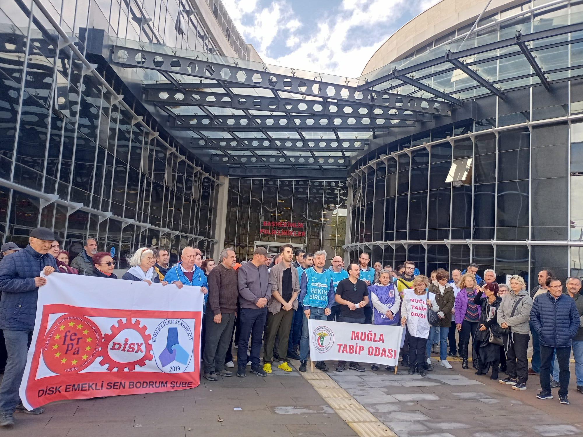Aile hekimlerinin pazartesi günü başlayan iş bırakma eylemleri, Cuma günü mesai bitiminde sonlanacak. Eylemin 3. Günü olan bugün aile hekimlerine, devlet hastanesi hekimleri ve sağlık emekçileri de destek verdi. Bu nedenle Bodrum Devlet Hastanesi önünde basın açıklaması gerçekleştirildi. 14 sağlık örgütlenmesinin ortak açıklamasını Bodrum Devlet Hastanesi hekimlerinden Serkan Akan okudu. Akan basın açıklamasında; “Sağlık Bakanlığı, toplumun ve sağlık emekçilerinin sorunlarına çözüm üretmek için bizlerin görüş ve önerilerini dikkate almak yerine; yeni yönetmeliklerle, otoriter emek rejimini tam anlamıyla yerleşik hale getirerek bizleri yok saymaya, itirazlarımızı sindirmeye, iş bırakma eylemlerimizin etkisini görünmez kılmaya çalışıyor. Bakanlığın bu olumsuz tavrına karşı bugün tüm sağlık kurumlarında üretimden gelen gücümüzü kullanarak iş bırakıyoruz!” diyerek ortak taleplerini dile getirdi.