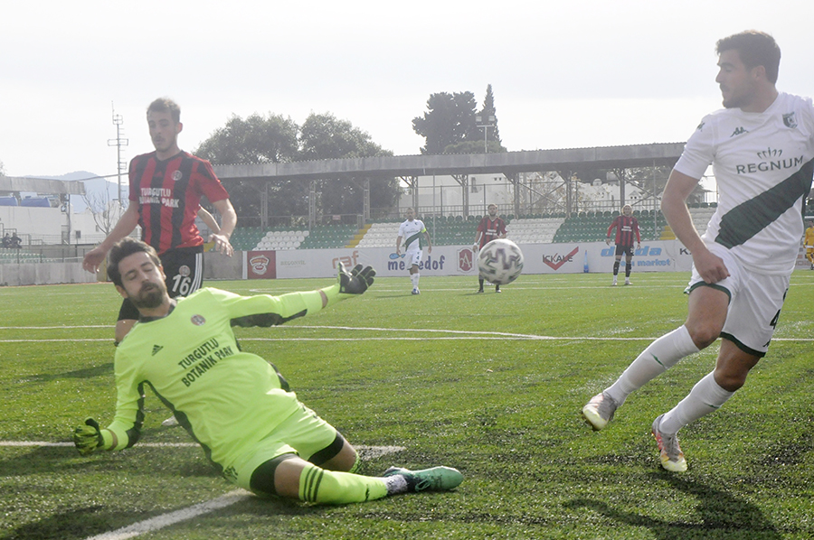 DK. 33 Turgutluspor mutlak golden oldu. Kırmızı siyahlılar sağ kanattan geliştirdiği atakta Haşim müsait pozisyondaki Koray’a aktardı, bu oyuncu altı pas üzerinde gecikince Bodrum savunması topu kontrol etmeyi başardı.