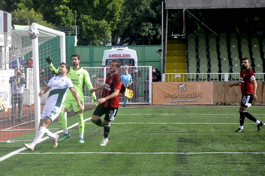 84 dk da Turgutlusporlu futbolcular ceza sahasında karabolde vurulan top Bodrumspor kalecisi Gökdeniz Yılmaz’da kaldı.
