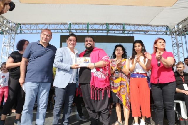 Konuşmaların ardından Kum-İrmene Geliştirme Derneği Süleyman Uyan, Cemevi Başkanı Cem Yalçın ve Kumköy ile Güvercinlik Muhtarları tarafından Başkan Ahmet Aras’a bir plaket takdim edildi.