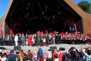 Tören, Atatürk anıtına çelenk koyulmasının ardından saygı duruşu ve İstiklal Marşı’nın okunmasıyla sona erdi.