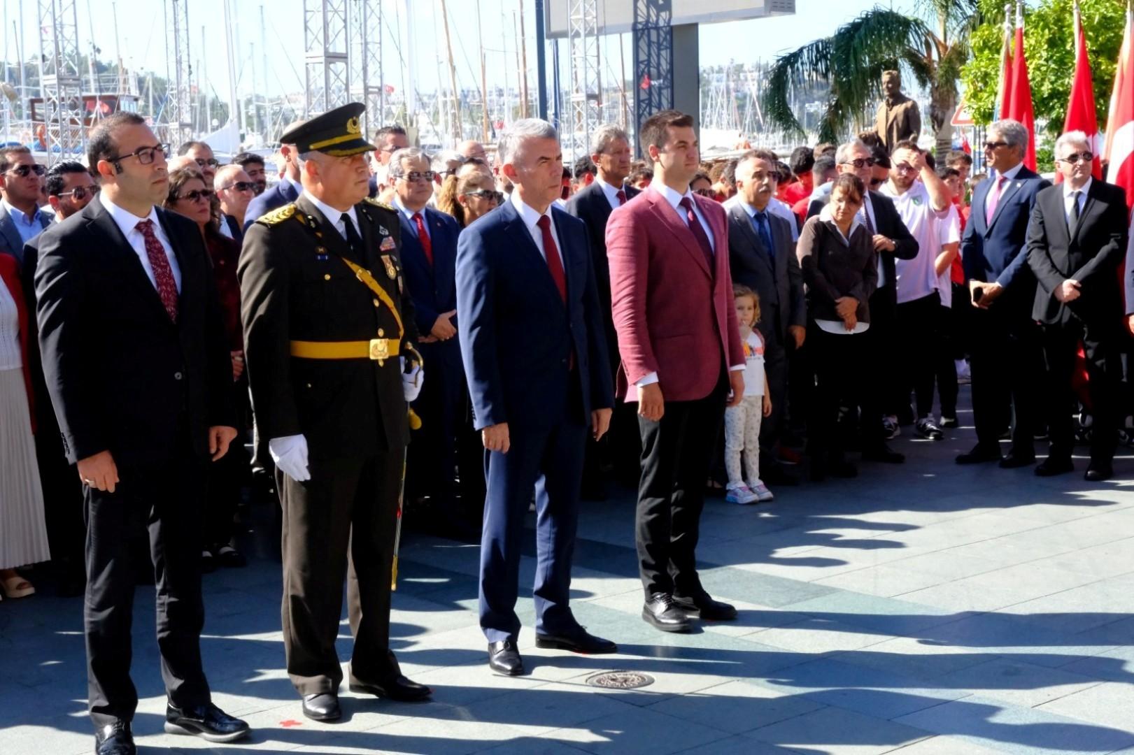 Cumhuriyet Bayramı kutlamaları, 28 Ekim Salı günü Bodrum Belediye Meydanı’ndaki Atatürk Heykeli önünde Bodrum Kaymakamlığı tarafından düzenlenen çelenk sunma töreniyle başladı.