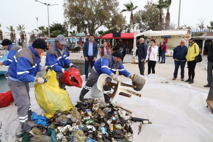 Yaklaşık 1,5 saat süren temizlikte deniz dibinden; 87 kg cam, 146 kg plastik, 43 kg metal, 76 kg da yanabilen madde olmak üzere toplam 352 kg atık çıkarıldı. Sonrasında ise atıklar ayrıştırılarak yüklendikleri kamyon ile geri dönüşüm için Bodrum Belediyesi 1. Sınıf Atık Getirme Merkezi’ne nakledildi.