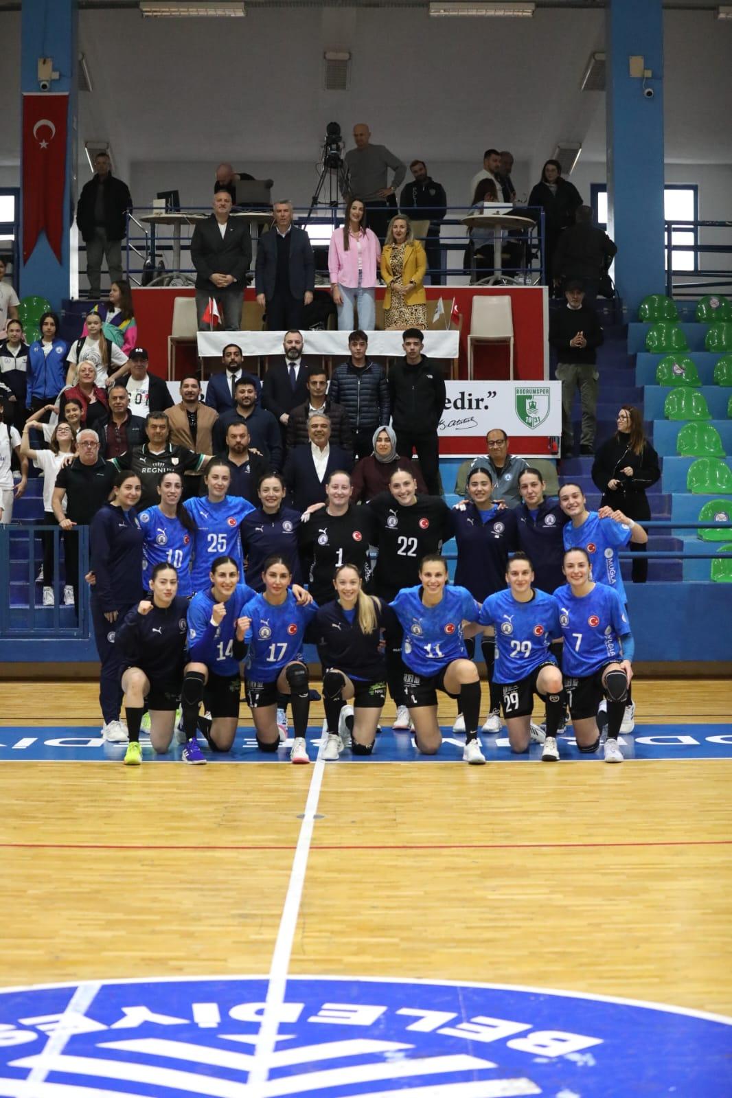 THF 2025-2026 Kadınlar Süper Ligi Play-Off etabının 4. haftası, Bodrum’da muhteşem bir hentbol şölenine sahne oldu. Lider Bursa Büyükşehir Belediyespor’u takibini sürdüren iki güçlü ekibin karşı karşıya geldiği kritik mücadelede, Armada Praxis Yalıkavakspor kendi seyircisi önünde Üsküdar Belediyesi Spor Kulübü’nü 27-25 mağlup etmeyi başardı.