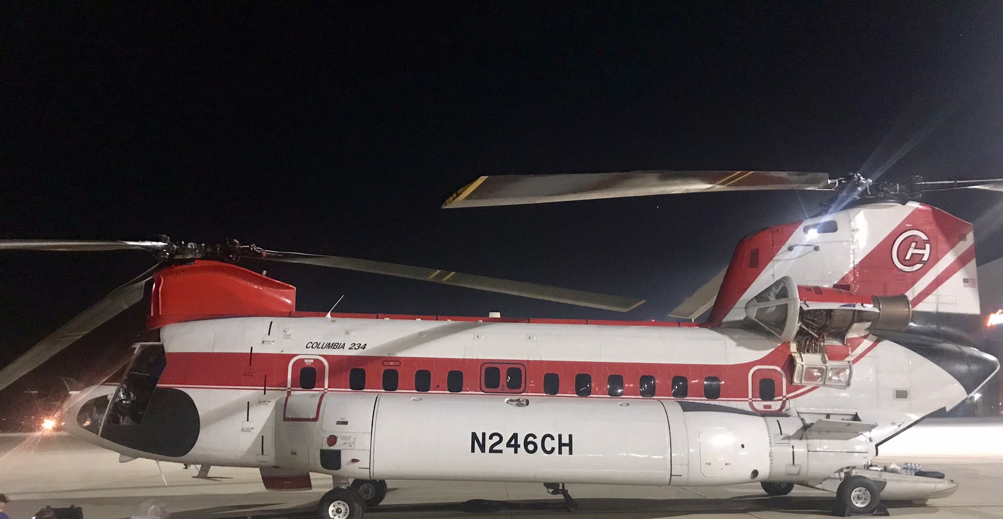 Amerikalı pilotların kullandığı CH 47 dev kargo helikopteri 50 metre uzunluğunda ki halatı ile denizden ve sığ göletlerden bile su alabildiği, tek seferde 10 ton su taşıma kapasitesi ile söndürme çalışmalarına katıldığı belirtiliyor.