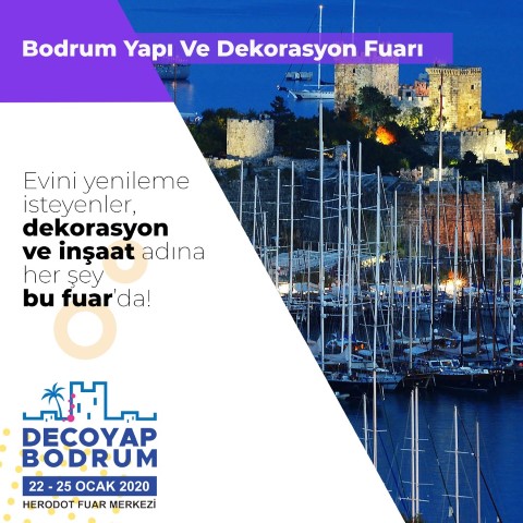 İnşaat sektörünün en kapsamlı buluşması Bodrum’da başlıyor. Ege’nin iki yakasını birleştiren ‘Bodrum Dekorasyon Tadilat ve İnşaat Malzemeleri Fuarı Decoyap Bodrum’, Bodrum Belediyesi’nin destekleriyle 22 Ocak 2020 tarihinde Konacık Herodot Kültür Merkezi Fuar ve Sergi Alanı’nda kapılarınıaçıyor. Tatil sezonuna giriş yapmadan önce turistik işletmelerin tüm ihtiyaçlarının yanıt bulacağı fuarda banyo ve mutfak donanımlarından ev mobilyalarına, havuz ekipmanlarından bahçe mobilyalarına kadar dekorasyona dair her şey yer alacak.