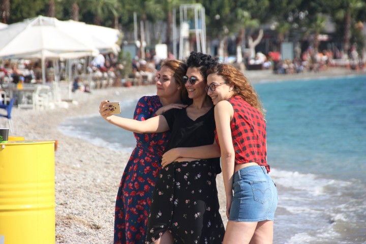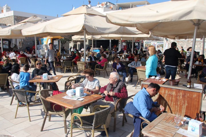 Muğla’nın Bodrum İlçesinde hava sıcaklığının mevsim normallerinin üstünde olmasıyla birlikte vatandaşlar sahil kenarlarına akın etti.