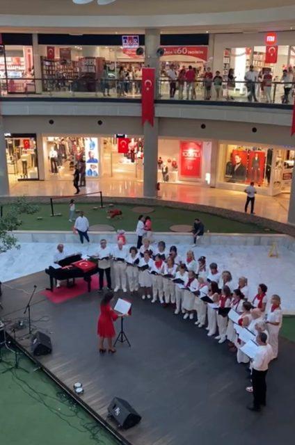 ÇYDD Bodrum Şubesince düzenlenen etkinlikte Bodrum Merkez ‘de, Midtown Alışveriş ve Yaşam Merkezi’ nde Defne Kozanoğlu yönetiminde sahne alan koroya piyanoda Genel Sanat Yöbetmeni İlkin Tokay eşlik etti.