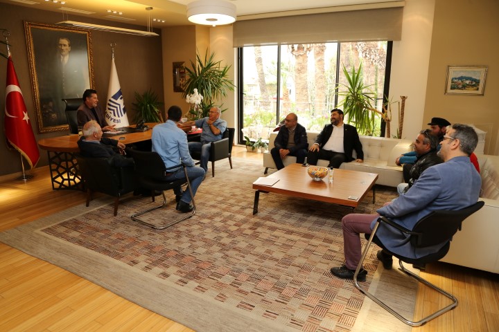 Türk – Japon Tasarım Çalıştay Koordinatörü Bülent Turan’ın Başkan Mehmet Kocadon’a yaptığı ziyarete, Bodrum Ticaret Odası Başkanı Mahmut Kocadon, Deniz Ticaret Odası Bodrum Şube Başkanı Gündüz Nalbantoğlu başta olmak üzere organizasyona destek veren firma yetkilileri de eşlik etti.