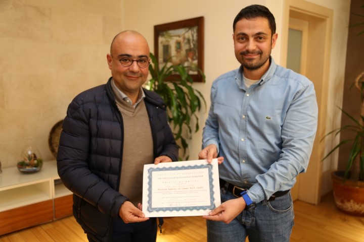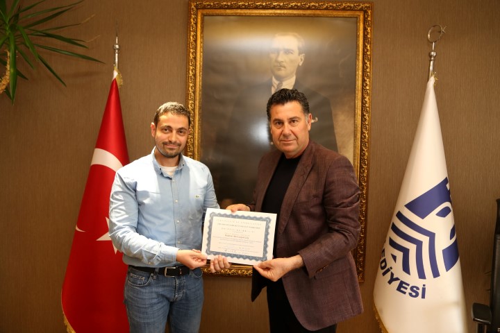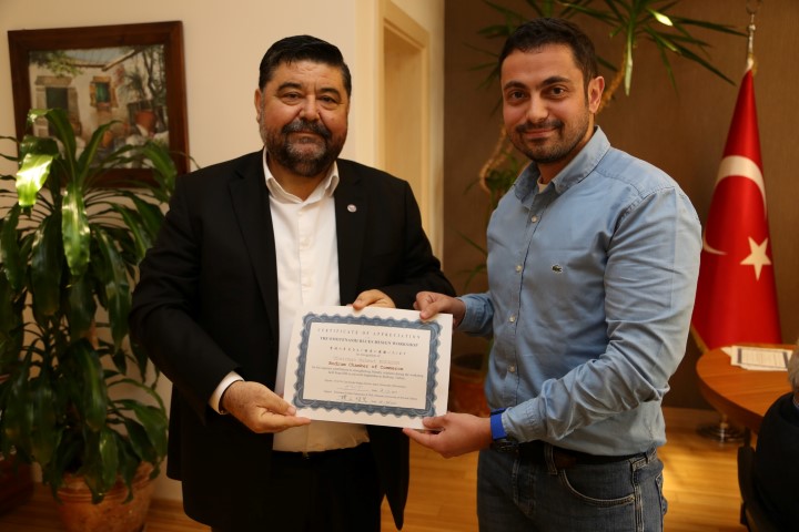 Japon Shizouka Kültür ve Sanat Üniversitesi Endüstriyel Tasarım Bölümü tarafından hazırlanan teşekkür belgelerini Bodrum Belediye Başkanı Mehmet Kocadon’u makamında ziyaret eden Türk – Japon Tasarım Çalıştay Koordinatörü Bülent Turan takdim etti.
