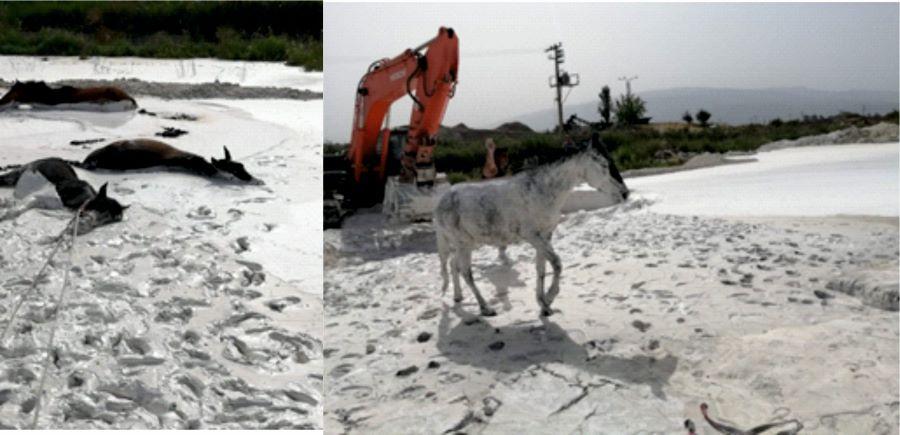 Foto 16- Aydın’da mermer çamuruna saplanan atlar (2020).