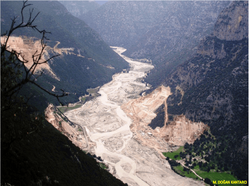 Foto 8- Batı Toroslar bölgesi Finike’de orman içinde ve dere kenarında açılmış, pasaları tarım alanını ve yakınında yaşayanları tehdit eden bir mermer ocağı.