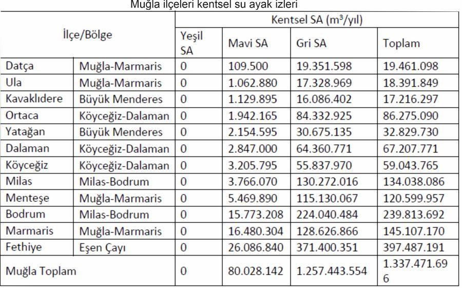 MUĞLA İLİ SU AYAK İZİ