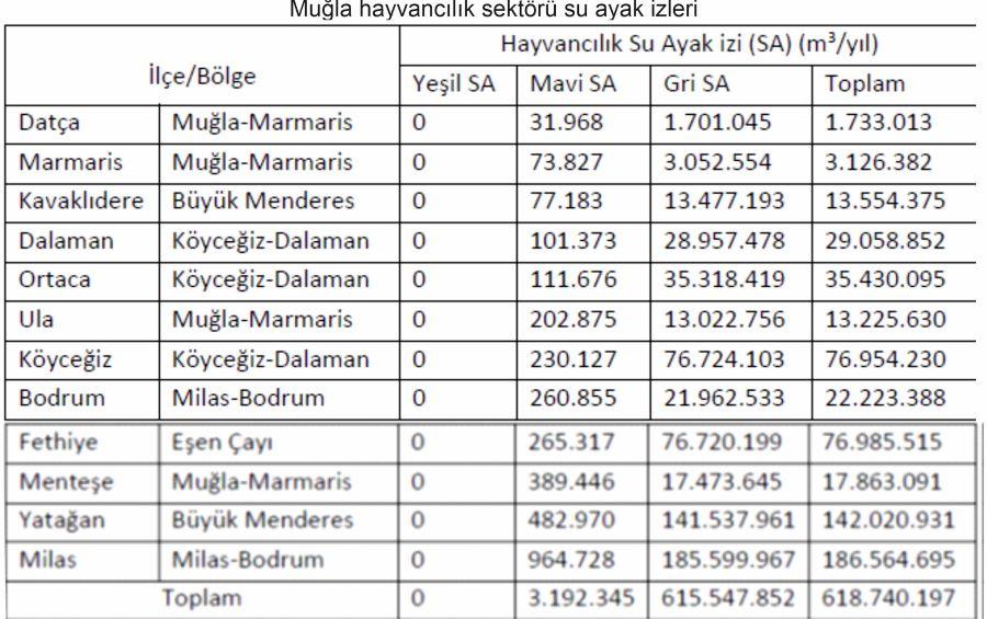 Muğla ili Su Ayak İzi