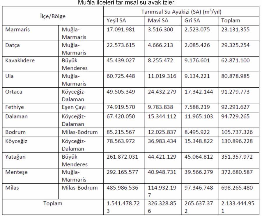 Raporda, Su Ayak İzi Değerlendirmesinin Muğla ili çerçevesinde uygulanması ile su kaynaklarının sürdürülebilir bir şekilde yönetilmesine olanak sağlayacak sonuçlar elde edilmiş ve gerekli stratejilerin oluşturulması için bir temel oluşturmuştur; denilmekte.