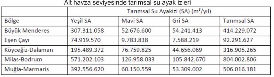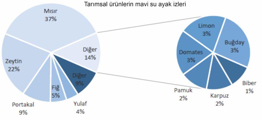 Rapora göre su ayak izi verileri aşağıdaki çizelge ve grafiklerde verilmiştir.