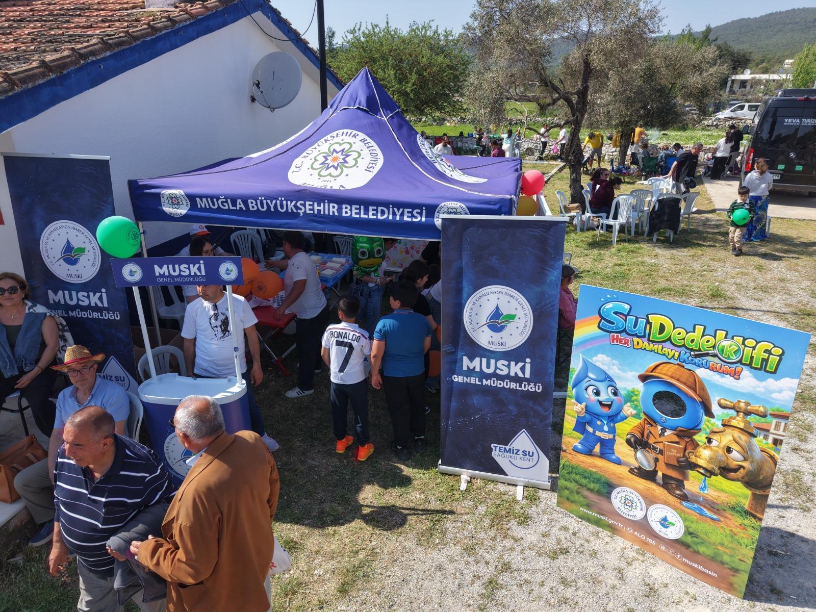 Muğla Büyükşehir Belediye Başkanı Ahmet Aras’ın su bilincinin çocuklara küçük yaşta kazandırılarak tasarrufun yaşamın her alanına yayılması vizyonu doğrultusunda Muğla Su ve Kanalizasyon İdaresi (MUSKİ) Genel Müdürlüğü etkinliklerine aralıksız devam ediyor. Bu kapsamda, Bodrum ilçesi Kumköy Mahallesi’nde 15’incisi düzenlenen “Kumköy Canlar Şenliği”ne MUSKİ Genel Müdürü Yılmaz Şengül de katılım sağladı. Şenlikte çocuklara yönelik kurulan stantlarda bilgilendirici broşürler ve eğlenceli oyunlar yer aldı. El baskısı boyama etkinliklerinin yanı sıra su tasarrufu ve doğru su kullanımı temalı yap-boz ve boyama hediyeleri de çocuklara sunularak kapsamlı ve eğitici faaliyetler gerçekleştirildi.