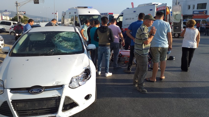 Kaza, akşamüstü saatlerinde Konacık Jandarma Kavşağı’nda yaşandı. Bodrum’dan Turgutreis istikametine seyreden otomobil, Şehit Barış Akay Caddesi’nden kavşağa giren motosiklete çaptı.