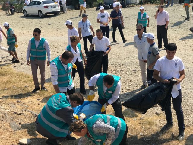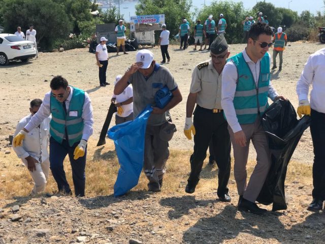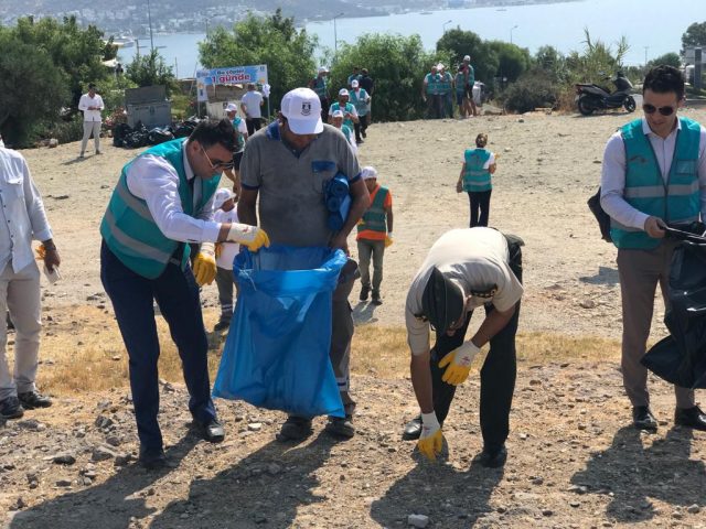 ”Temiz Çevre Temiz Toplum” projesi kapsamındaki temizleme çalışmalarına Bodrum İlçe protokolü ile birlikte Bodrum Cumhuriyet Başsavcılığı Denetimli Serbestlik Müdürlüğünde gözetim altında bulunan, haklarında mahkemelerce kamuya yararlı bir işte çalıştırılması yükümlülüğü tedbiri uygulanan hükümlüler ile Bodrum Belediyesi Temizlik İşleri görevlileri katıldı.