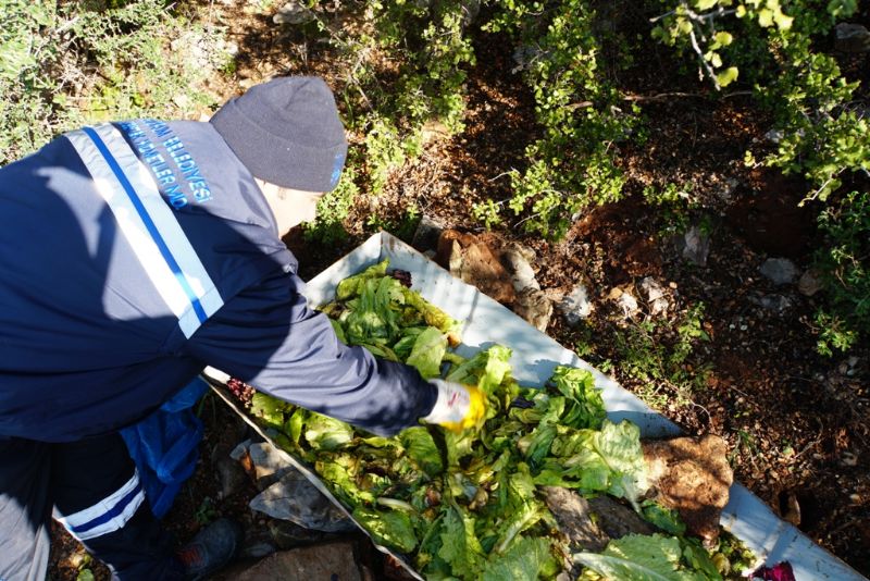 Bodrum’da yaban domuzları için Bodrum Belediyesi ekipleri tarafından doğaya yemlikler yerleştirilip içerisine pazar atıkları koyuluyor.