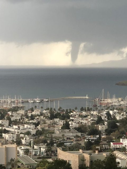 Yunanistan’ın Kos Adası açıklarında oluşan ve Bodrum’da da gözle görülebilen hortum paniğe yol açtı.